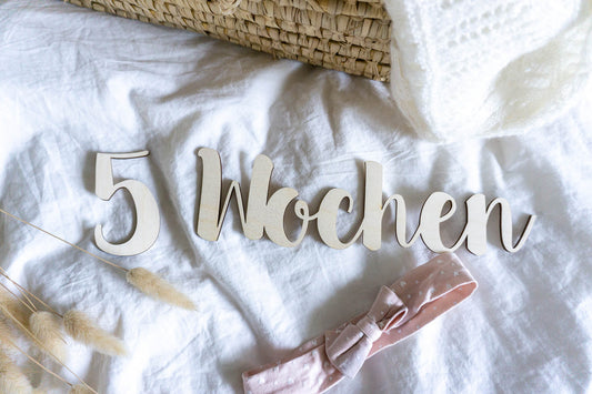 Ausgeschnittene Meilensteine aus Wörtern und Zahlen