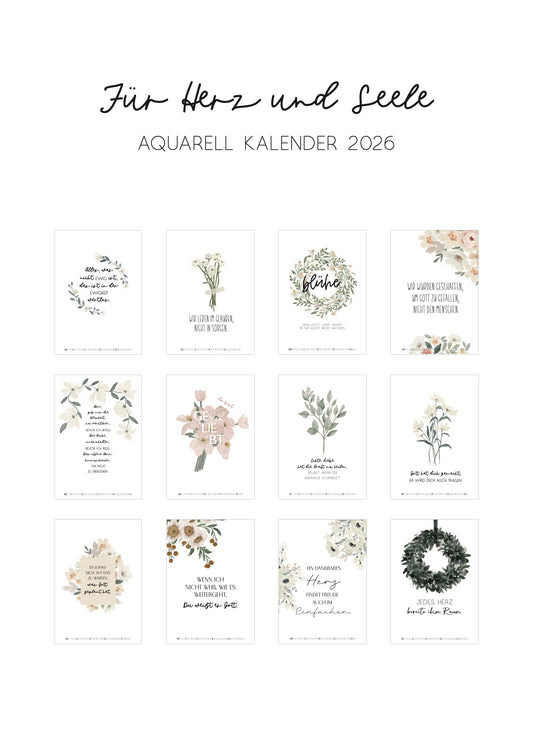 Aquarellkalender für Herz und Seele 2026 in DIN A3